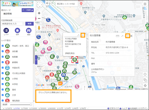 トップページの地図をクリックすると、クリックした場所を中⼼に地図を表示します。
