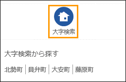 住所の⼀覧から選択し、⽬的の場所を表示します。 ⼀覧からリンクを選択すると、さらに絞り込める場合はその⼀覧が、そうではない場合はその住所を中⼼に地図が表示されます。