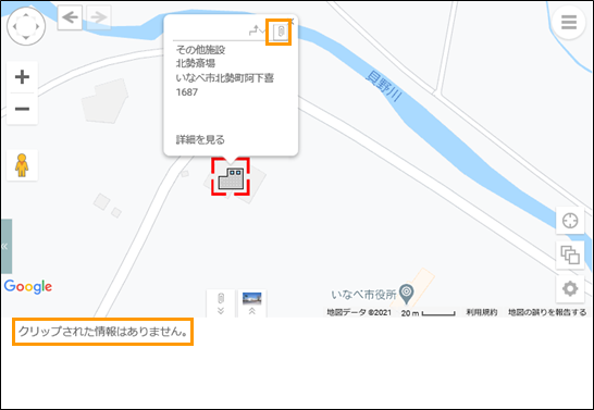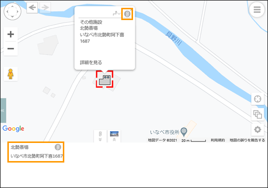 「この場所の情報」をクリックすると、その地点の住所、座標が表示されます。