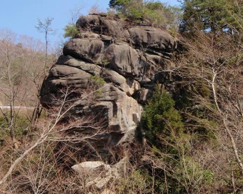高さ20mもある花崗岩の巨石。ちょうど石を重ねたように見えるのが命名の由来である。また、見る角度によって様々な形に見え、自然の造り上げた芸術作品のようである。夏井川の支流である中川の上流2㎞程に所在するが、周囲にはアカヤシオが群生しており、春のアカヤシオ、