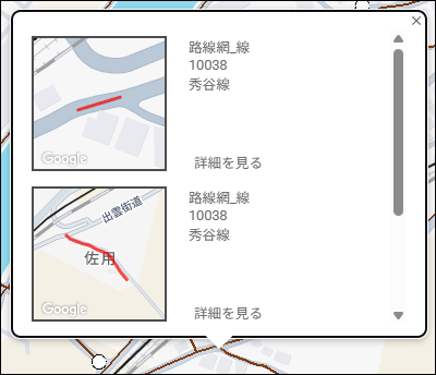 レイヤ、もしくは、メモのラインをクリックし、詳細情報を表示します。