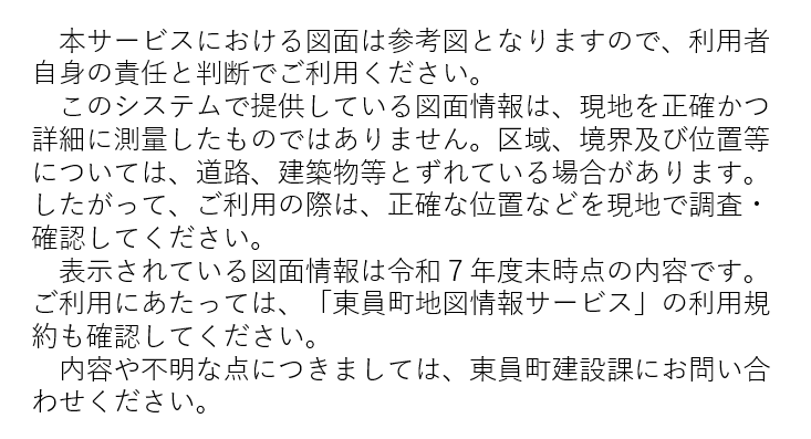 この地番図情報については、令和7年1月1日現在のものです。 権利や義務の発生するものなど、重要な事項の情報は、必ず東員町税務課にご確認ください。