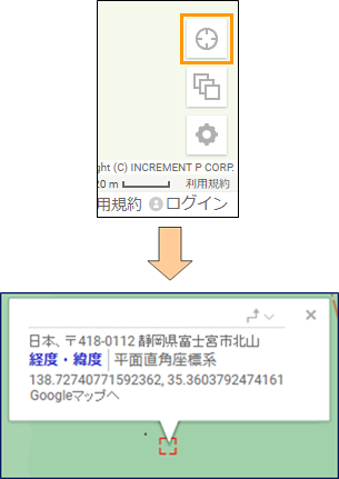 「この場所の情報」をクリックすると、その地点の住所、座標が表示されます。