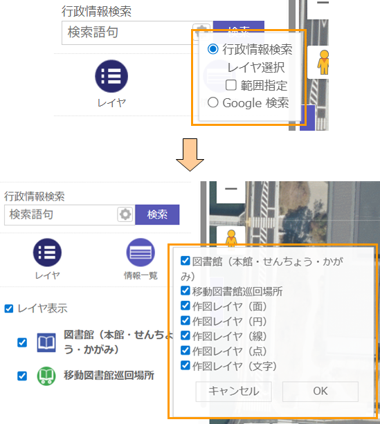検索対象とする「レイヤ」を選択できます。