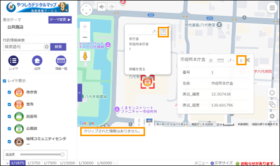 レイヤ、もしくは、メモのラインをクリックし、詳細情報を表示します。